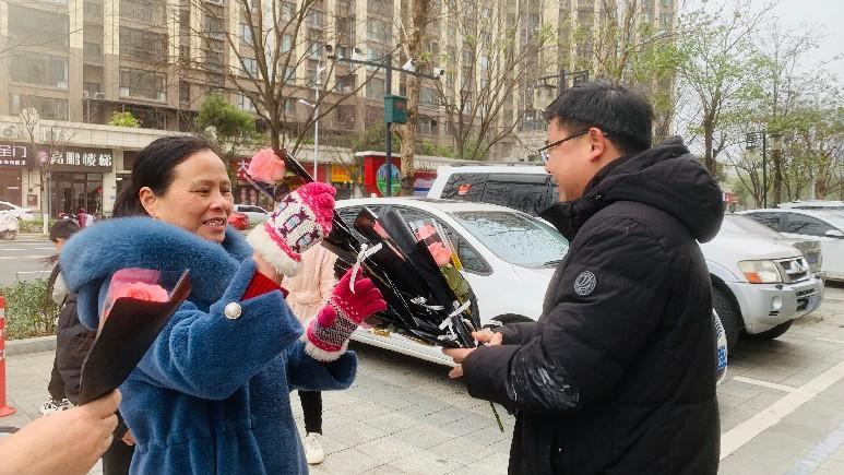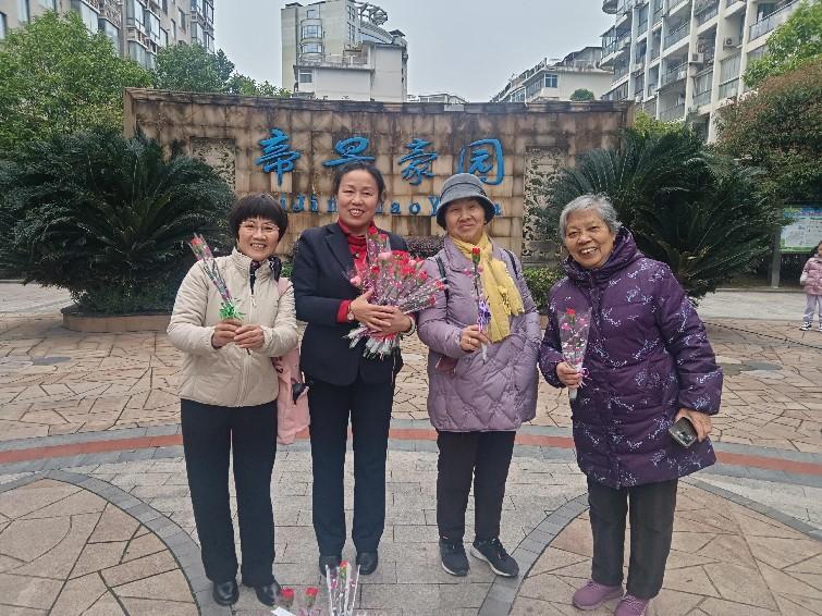 帝景豪園小區舉辦“寵愛女神”便民服務活動,給小區女性業主送鮮花、提供免費沖洗地墊、免費磨刀服務。