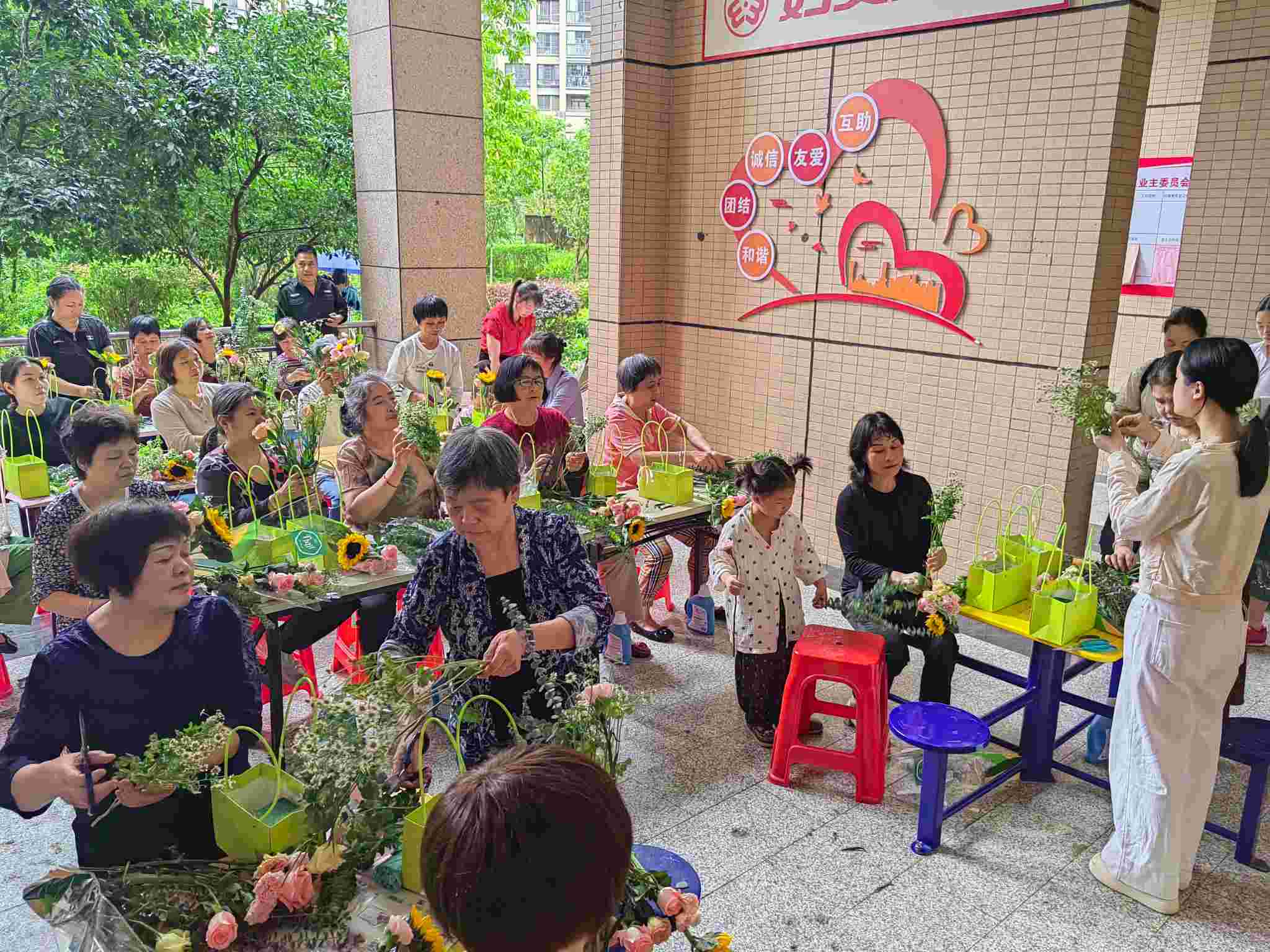 悠悠花香,情誼綿長。在母親節來臨之際,為弘揚孝母感恩的良好道德風尚,傳承中華民族傳統美德,傳遞對母親的感恩之情,營造溫馨美好的小區氛圍。5月9日上午,水南街道登峰社區、燕興集團、業主委員會共同舉辦了“感恩母愛花添韻,合歡枝暖筑芳鄰”母親節主題插花活動,為母親送上節日祝福,營造感恩母愛的良好社會氛圍。本次活動吸引了眾多小區居民踴躍參與,以鮮花為載體,為母親們獻上了一份獨特的節日祝福。