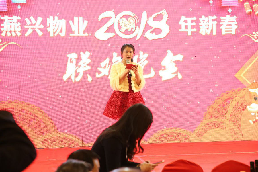 公司董事長劉燕首先致辭。她指出:過去的一年,燕興物業(yè)圓滿完成了年度各項工作目標(biāo)任務(wù),榮獲“江西省家庭服務(wù)業(yè)優(yōu)質(zhì)服務(wù)先進企業(yè)”“江西省優(yōu)秀企業(yè)”“贛州市第九屆文明單位”“贛州市市長質(zhì)量獎提名獎”等稱號。成績和榮譽的取得,歸功于各位領(lǐng)導(dǎo)和朋友的關(guān)心厚愛,歸功于廣大業(yè)主的充分信任,歸功于全體燕興人的努力奮斗;新的一年,我們要用“星標(biāo)準(zhǔn)”“星流程”“星服務(wù)”,建設(shè)成為“懂你的星管家”,讓客戶幸福,讓員工富裕,讓公司強大;要推行質(zhì)量變革、效率變革、動力變革,打造燕興一流品牌,共同開創(chuàng)燕興物業(yè)新時代!并祝大家在新的一年里身體健康!工作順利!闔家幸福!