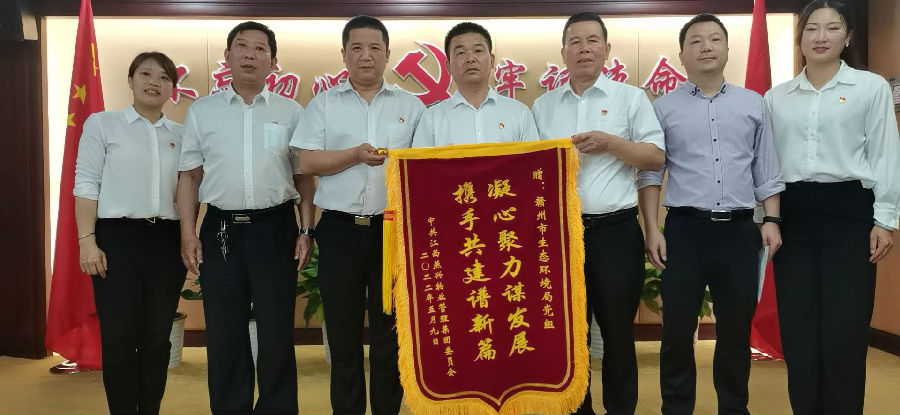 生態(tài)環(huán)境局黨組成員鐘副局長(zhǎng)接過(guò)錦旗,說(shuō)到:“高質(zhì)量黨建引領(lǐng)企業(yè)高質(zhì)量發(fā)展,我們是共建單位也是業(yè)務(wù)合作單位,攜手抓好黨建共建,力爭(zhēng)在市“三大戰(zhàn)略、八大行動(dòng)”中貢獻(xiàn)更大力量,爭(zhēng)創(chuàng)第一等成績(jī)向黨的二十大獻(xiàn)禮”。